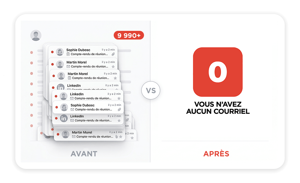 Vide ta boîte de réception en quelques minutes… même si ton inbox déborde avec des centaines, voire des milliers de courriels.